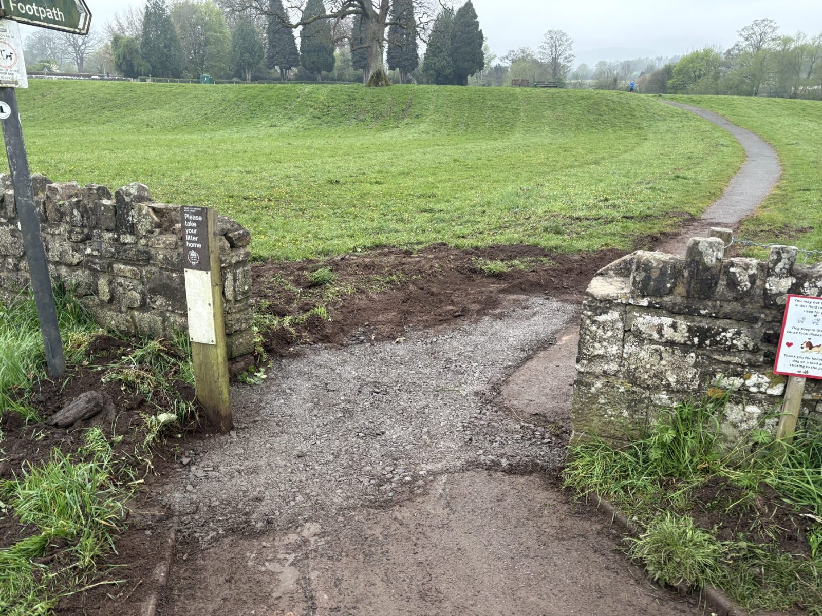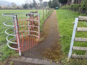 The kissing gate opposite the Usk Bridge and along the side of Llangattock Cemetery have been removed temporarily. The contractors, Alun Griffiths, tell us that this is to create an accessible route while the pavement is worked on in order to make it wider. While this phase of work is ongoing single-file traffic controlled by traffic lights will be switched to the other side of Hillside Road by the Vine Tree. The contractors say this will probably happen on Friday. When the gates are replaced, the path will be raised up to prevent it flooding. LCC continues to work with others to improve this path and make it accessible to all. More news on that to follow in due course.
