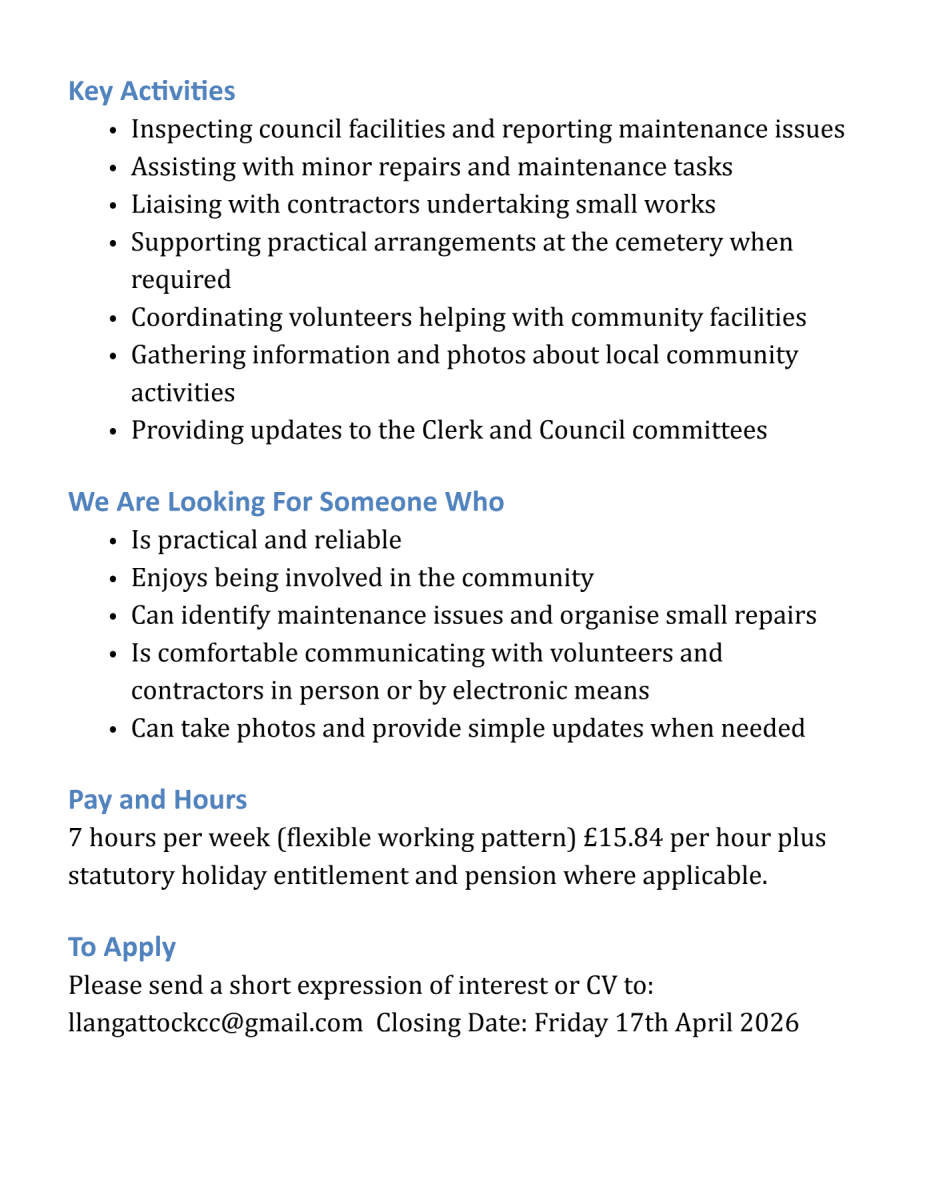 New part-time job in Llangattock